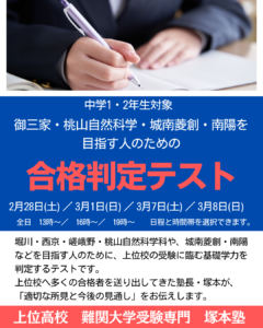 御三家・桃山自然科学・城南菱創・南陽を目指す人のための 合格判定テスト