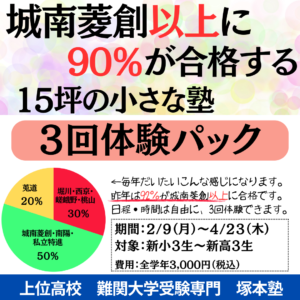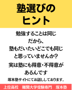 上位校受験専門塚本塾インスタグラム 塾生の80%以上が堀川・西京・桃山・城南菱創以上に合格する、上位校受験専門塚本塾がお送りする保護者説明会 「わが子の国語力を育てる具体策」 塾生の80%以上が、堀川・西京・桃山・城南菱 […]