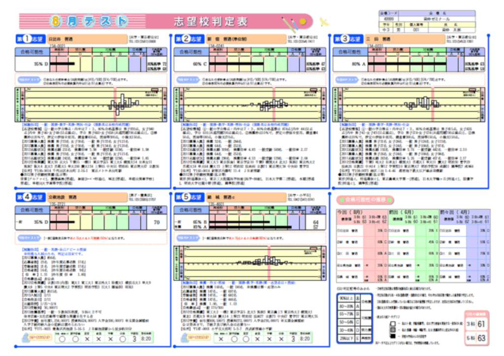 中2の8月以降のテストでは、志望校判定が出ます。該当の時期に受験する人は、志望校として登録する学校・コースを決めておいてください。