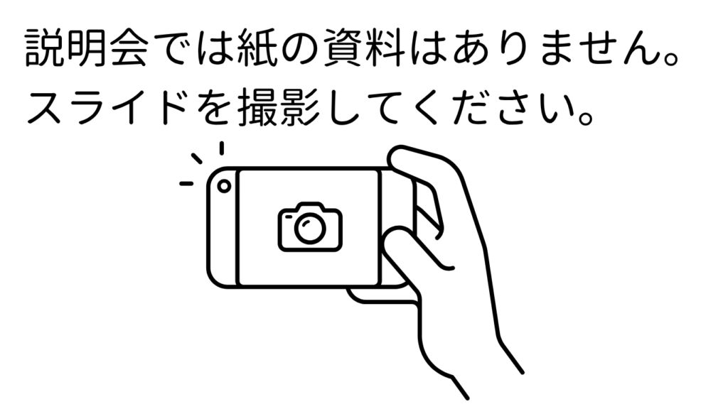 さらに、説明会当日ご質問があればお伺いすることができるかと思います。ひととおり説明を聞いていただいて、その場で湧いた疑問に、その場でお答えする、または一緒に考えさせていただくことが可能です。
